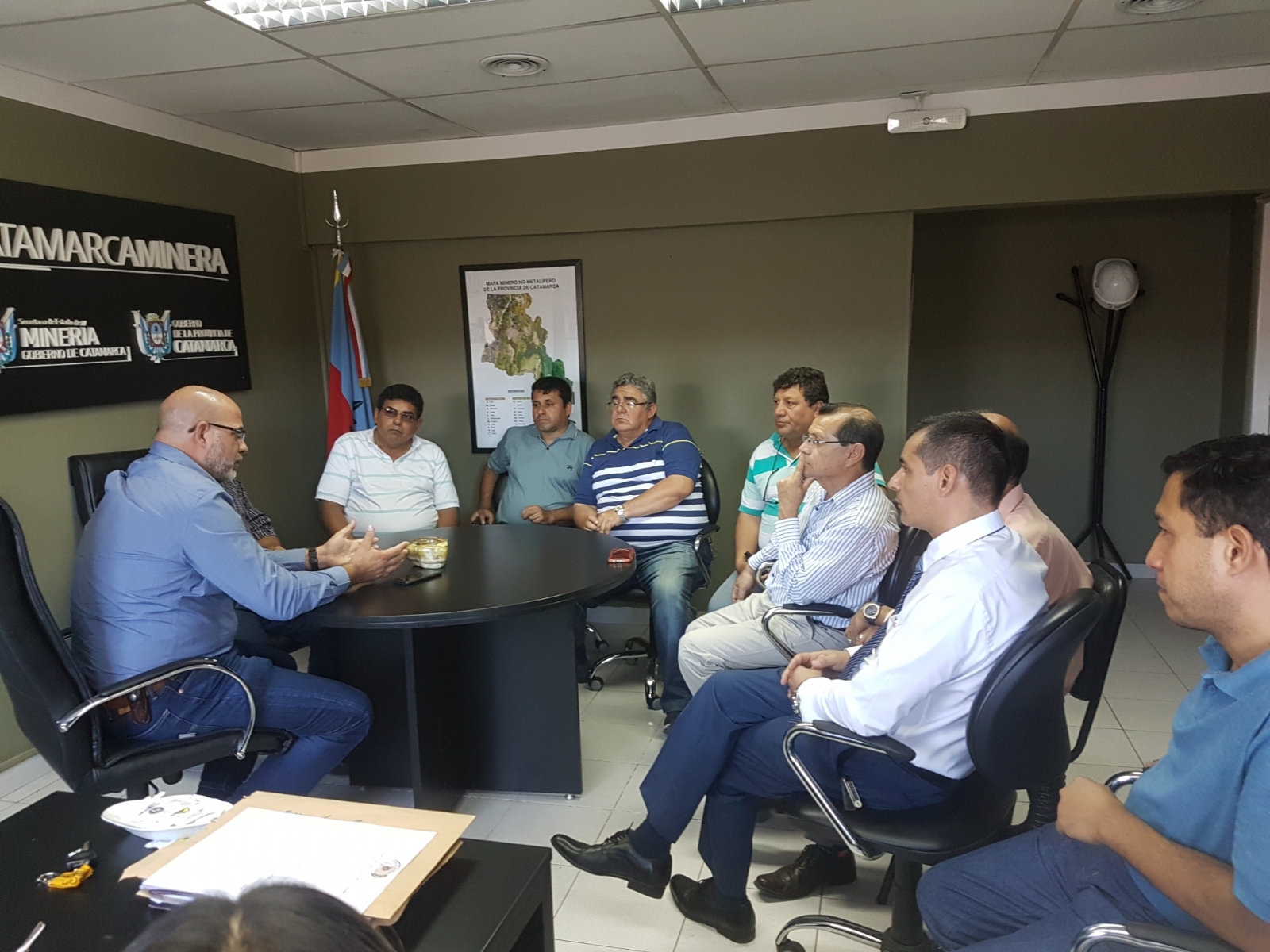 El secretario de Minería, Rodolfo Micone, junto a la subsecretaria del área, María Inés Ulla y el director de la Unidad Sectorial de Inversiones A/C de la Dirección de Gestión Ambiental Minera recibieron a integrantes de la Confederación General del Trabajo (CGT) de la Agrupación Azul y Blanca, Pedro ‘Uto’ Carrizo, a quienes les brindaron un panorama sobre el estado actual del sector y en particular, la situación de los proyectos mineros en producción, prospección y exploración radicados en la provincia.