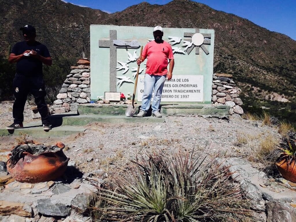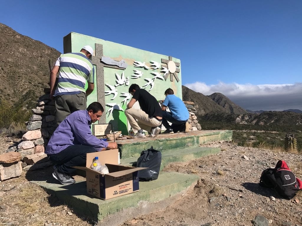 Cesar Bazanfue el director técnico de la restauración de la obra, y lo acompañaron la Delegada de Osprera Catamarca Myrian Juarez,DamianBazan, VictorAndriuolo y Sebastian Rojas todos empleados de la Obra Social. A Adrián Molina lo acompañaron Raul Bustos y Hector Blanco de UATRE. (Quienes realizaron la limpieza y desmalezamiento del lugar)
