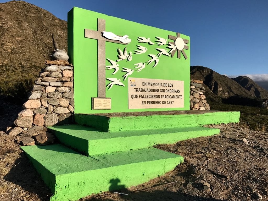 El monumento fue construido para recordar el trágico accidente sucedido en el mes de febrero de 1997, donde fallecieron 11 trabajadores transitorios oriundos de la provincia de Tucumán y que eran trasladados de manera ilegal en la caja de un camión.El mismo se inauguró el 14 de noviembre de 2007 y la obra fue dirigida por el artista plástico Raúl Guzmán.