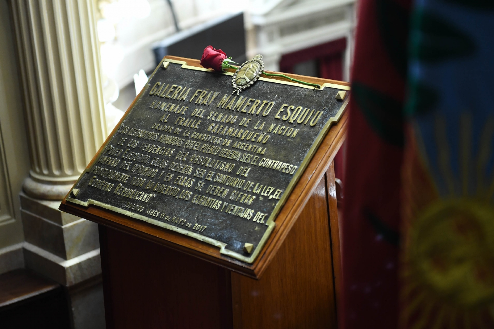 “Es un verdadero orgullo para los catamarqueños consagrar con el nombre de nuestro santo franciscano para que ilumine y acompañe la actividad legislativa del Senado de la Nación”, dijo Mera en su discurso de homenaje al orador de la Constitución.