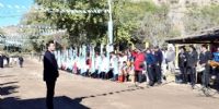 El cronograma de actividades inició con una salva de bombas e izamiento de la bandera en la plaza principal, “Gral. Manuel Belgrano”.