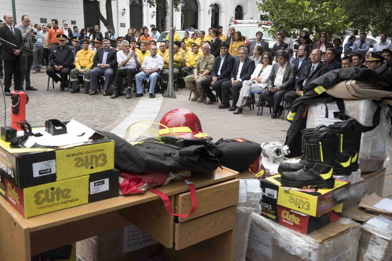 Son 10 trajes estructurales completos para bomberos de la Policía, los cuales están constituidos por: Chaquetón, pantalón, tiradores, botas de cuero ignifugo, guantes, cascos, capucha, todos elementos construidos con parámetros de las normas internacionales.