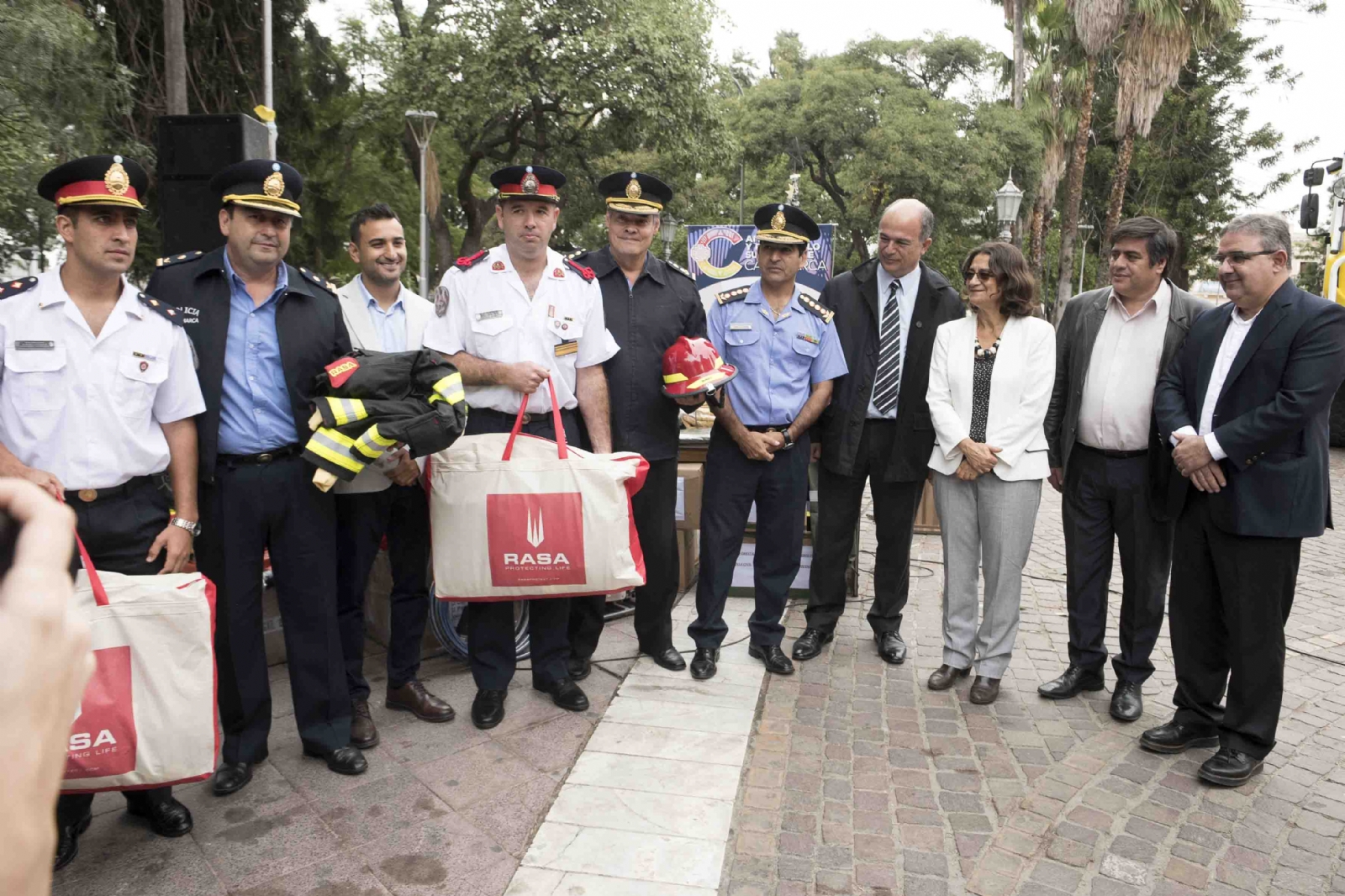La mandataria estuvo acompañada por el Secretario de Seguridad Marcos Denett; el Secretario de Medio Ambiente, Juan Rosales; el ministro de Gobierno, Marcelo Rivera; el Jefe de Policía, Orlando Quevedo; el Director de la División Bomberos, Manuel González; el director provincial de Bosques Nativos Lic. Enrique Fra; legisladores y autoridades del Poder Ejecutivo.