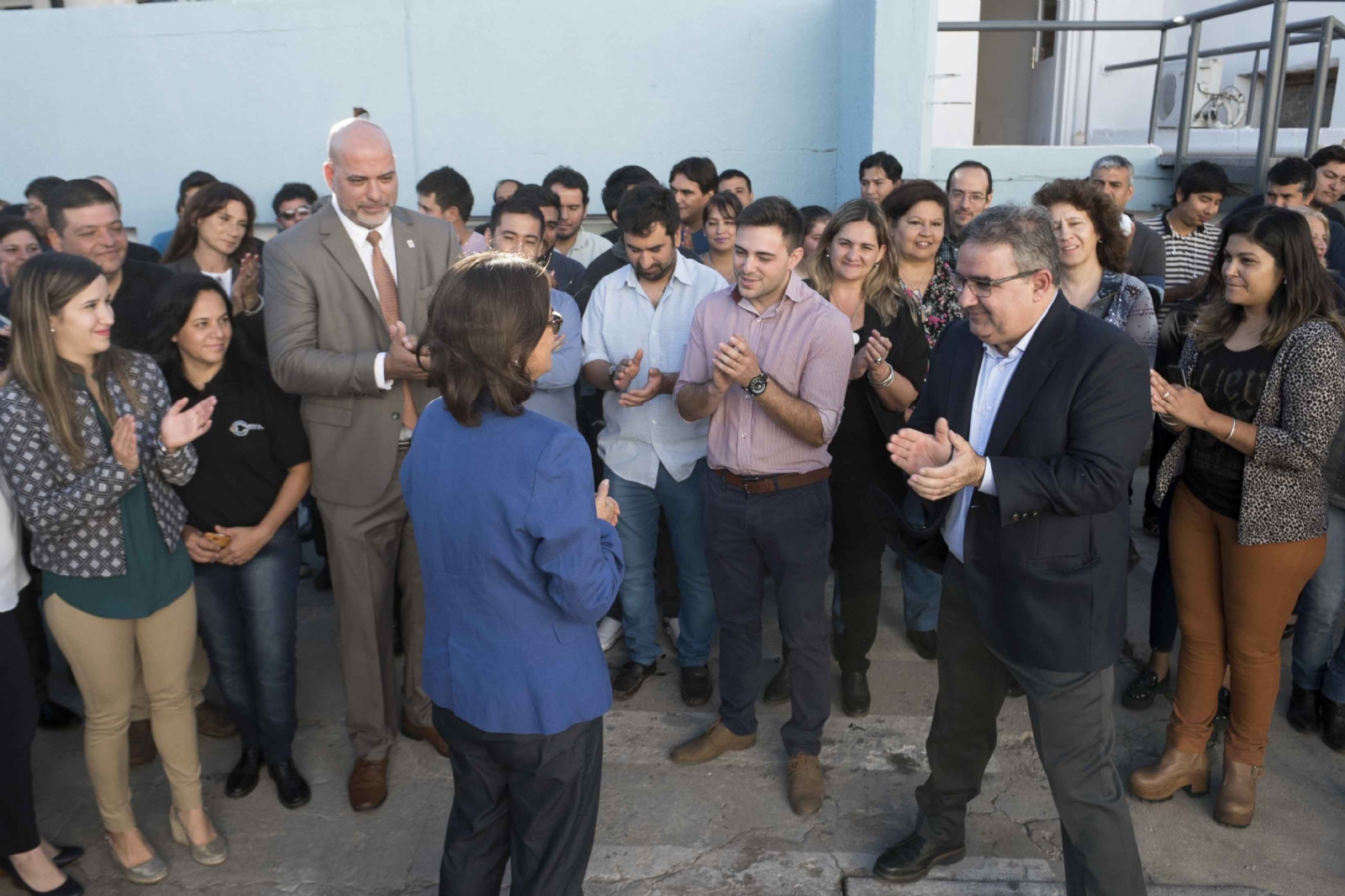 Antes de la inauguración de las oficinas de FMC, la Gobernadora Lucía Corpacci, visitó la Secretaría de Estado de Minería para saludar al personal y directivos y agradecer el compromiso para con el sector y la Provincia.