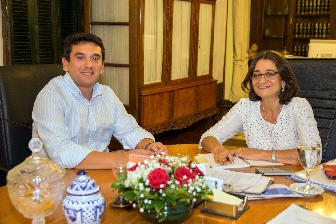 La mandataria y el jefe comunal dialogaron sobre las obras que se realizan en el departamento, principalmente del plan de urbanización municipal que se ejecuta entre nuevas veredas, pavimentos y actualmente la refacción de las principales iglesias y capillas del departamento.
