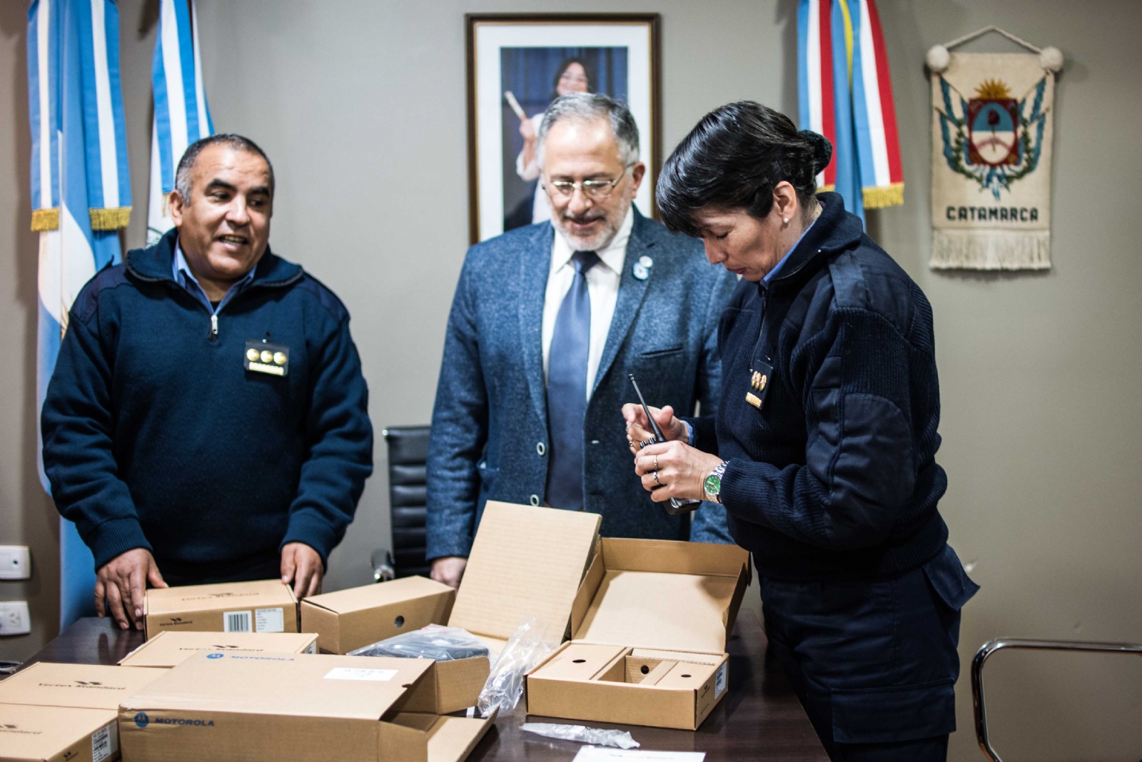 El presidente provisorio de la Cámara de Senadores Jorge Solá Jais entregó a la Policía de Catamarca un equipo de comunicación de rescate de alta montaña, que fuera recibido en la oportunidad por la Subjefe, la Comisario Ana María Garay.