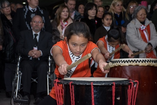 La noche fue engalanada por los niños de la primaria del Colegio del Carmen, quienes usaron lenguaje de señas durante los himnos nacionales, y el conjunto de niñas argentino-japonesas que dieron un espectáculo de tambores taiko en los instantes previos al corte de cinta y la recorrida final por toda la exposición.