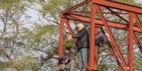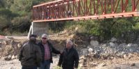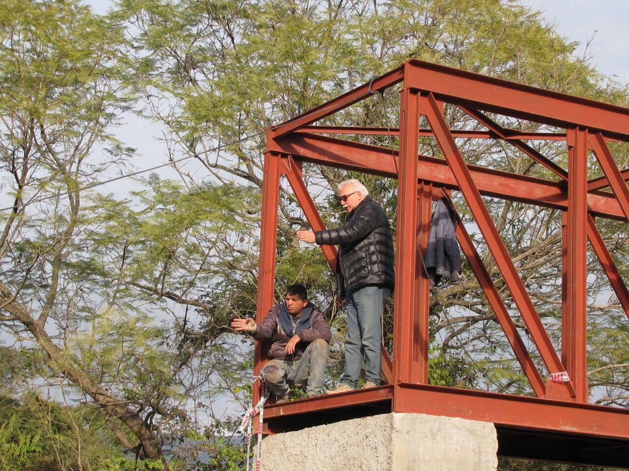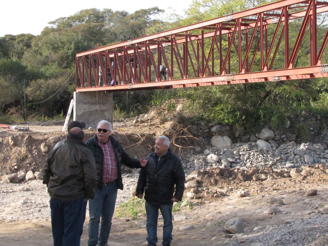 En primera instancia, recorrió el avance de la obra de la pasarela metálica, encauce y defensa del río de La Aguada que se está llevando adelante en la localidad de Alijián.