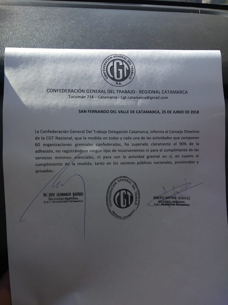 Según informaron desde la CGT, las 60 organizaciones confederadas “superó claramente el 90 por ciento de adhesión, no registrándose ningún tipo de inconvenientes ni para el cumplimiento de los servicios mínimos esenciales ni para con la actividad gremial en sí”.