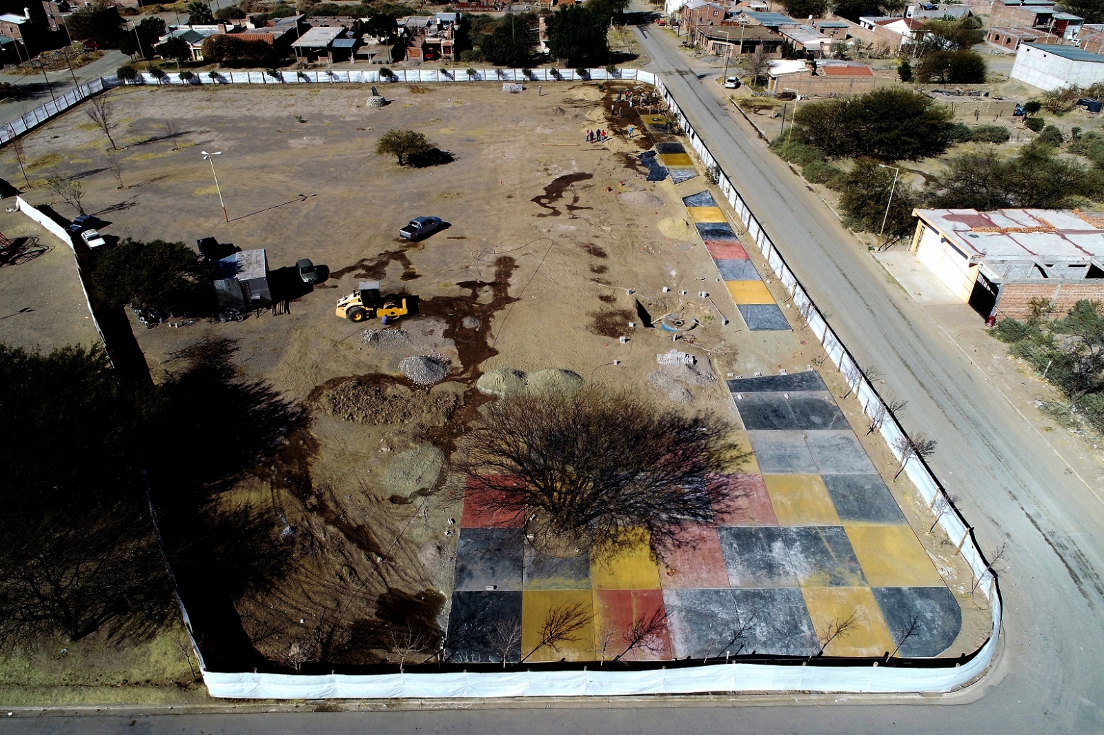 La obra avanza con los trabajos de las caminerías de alisado cementicio de hormigón con color, el nivelado del terreno y el replanteo de la instalación eléctrica y alumbrado.