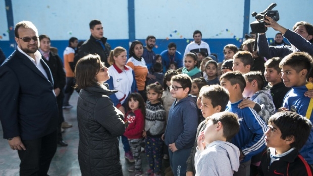 La mandataria estuvo acompañada por el ministro de Desarrollo Social, Eduardo Menecier, el Secretario de Deportes, Maximiliano Brumec y el vicepresidente de la Cámara de Diputados, Armando López Rodríguez. En su primera visita llegó hasta el Polideportivo de las Mil Viviendas, donde fue recibida por el diputado Marcelo Murúa, los diferentes colaboradores del Centro Vecinal y el acompañamiento de los profesores del CIIC.