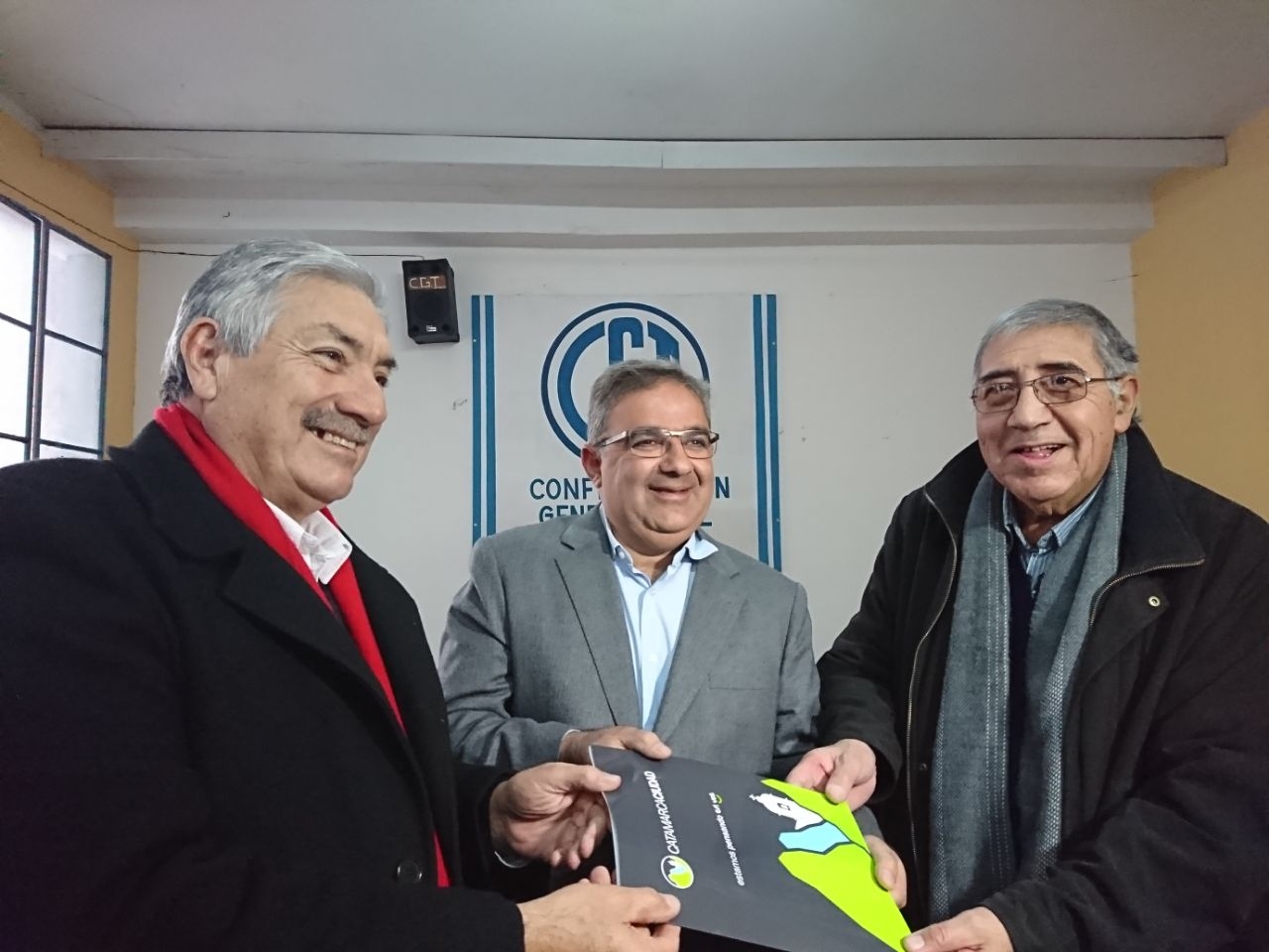 El intendente Raúl Jalil fue recibido por el pleno de la Confederación General del Trabajo en la sede institucional de calle Tucumán, para hacer entrega de la papelería correspondiente a los terrenos que el municipio cederá para que los trabajadores puedan construir viviendas.