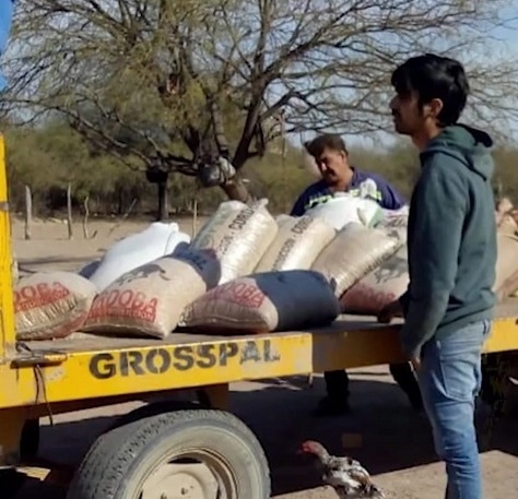 Un equipo de colaboradores entregó bolsas de maíz para alimentar al ganado. A su vez, el funcionario legislativo planteó la problemática que sufren los productores locales ante el Ministro de Producción, Daniel Zelarayan y el Secretario de Agricultura, Ganadería y Agroindustria, Hugo Alejandro Corpacci.