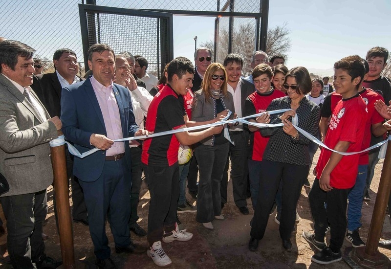 Lucía retornó luego a Fiambalá y se dirigió al Barrio de La Ramadita para inaugurar el Playón Polideportivo, solicitado por los vecinos y el reconocido club deportivo. Allí los jóvenes podrán disfrutar de diversos deportes ya que la obra está acondicionada con cerrado perimetral e iluminación led.