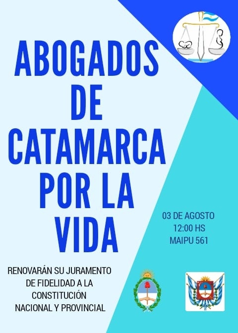 Porque el día que decidimos iniciar nuestra profesión, JURAMOS RESPETAR LA CONSTITUCIÓN NACIONAL Y PROVINCIAL, hoy a las 12:00 hs en Maipú 561 , los Abogados por la Vida de Catamarca renovaremos nuestro Juramento. Vamos a Defender Nuestra Carta Magna con todo lo que aprendimos, estudiamos y hoy ponemos en práctica, incluyendo el sistema de derechos allí establecidos, por eso, no vamos a dejar que el DERECHO A LA VIDA DESDE LA CONCEPCIÓN allí consagrado sea vulnerado! No lo vamos a permitir! #Sialas2vidas #TodaVidaVale