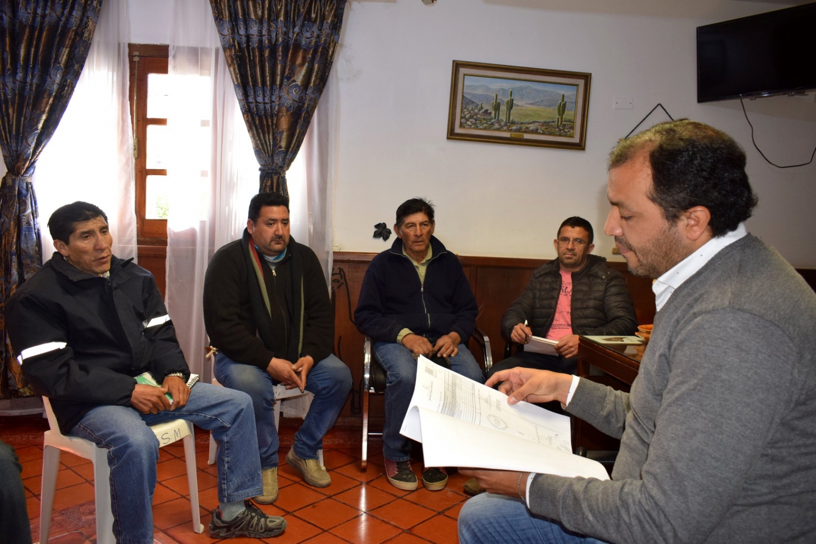 Santa María- Esta mañana, el intendente, C.P.N Juan Pablo Sánchez, convocó a los vecinos referentes de El Cerrito, entre ellos el vecino que donó el terreno, Don Beto Chaile, el presidente del Club, Ricardo Gutiérrez, y el secretario, César Gervan y Antonio Quiroz, vocal primero, el presidente de los Gauchos, Pablo Quiróz y el presidente de la Capilla, Daniel Chaile, para informarles la importante noticia, tan esperada por toda la comunidad de El Cerrito, la de la perforación para la provisión de agua potable, que ya es una realidad.