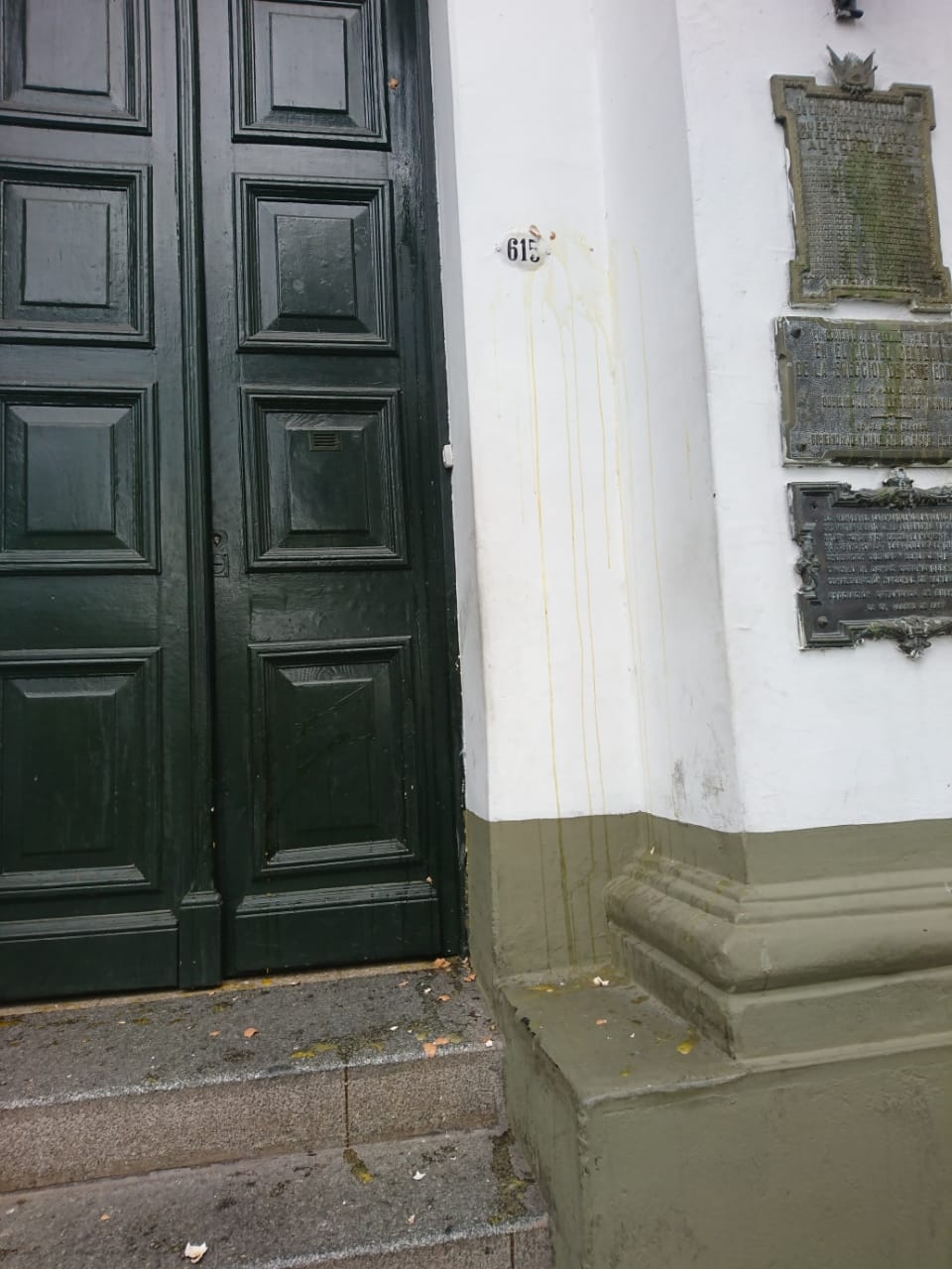 En medio de la manifestación de los municipales de la Capital, los trabajadores nucleados en el SOEM arrojaron huevos contra las puertas de Casa de Gobierno.