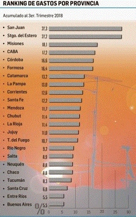 Mientras que en el otro extremo, las jurisdicciones que le dieron una menor importancia relativa al gasto de capital fueron Buenos Aires (5,5%), Entre Ríos (5,5%), Santa Cruz (6,8%), Tucumán (8,3%) y Chaco (8,8%).