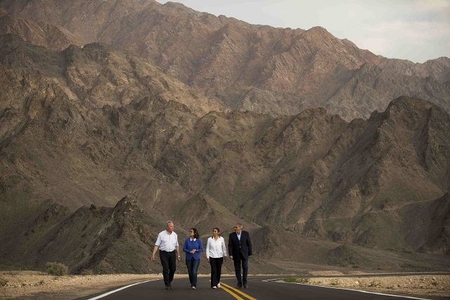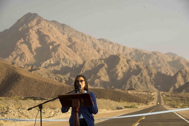La Gobernadora Lucía Corpacci visitó hoy Fiambalá, donde desarrolló una agenda que incluyó la repavimentación de la Ruta Provincial Nº 136, que permite el acceso al complejo turístico Las Termas.