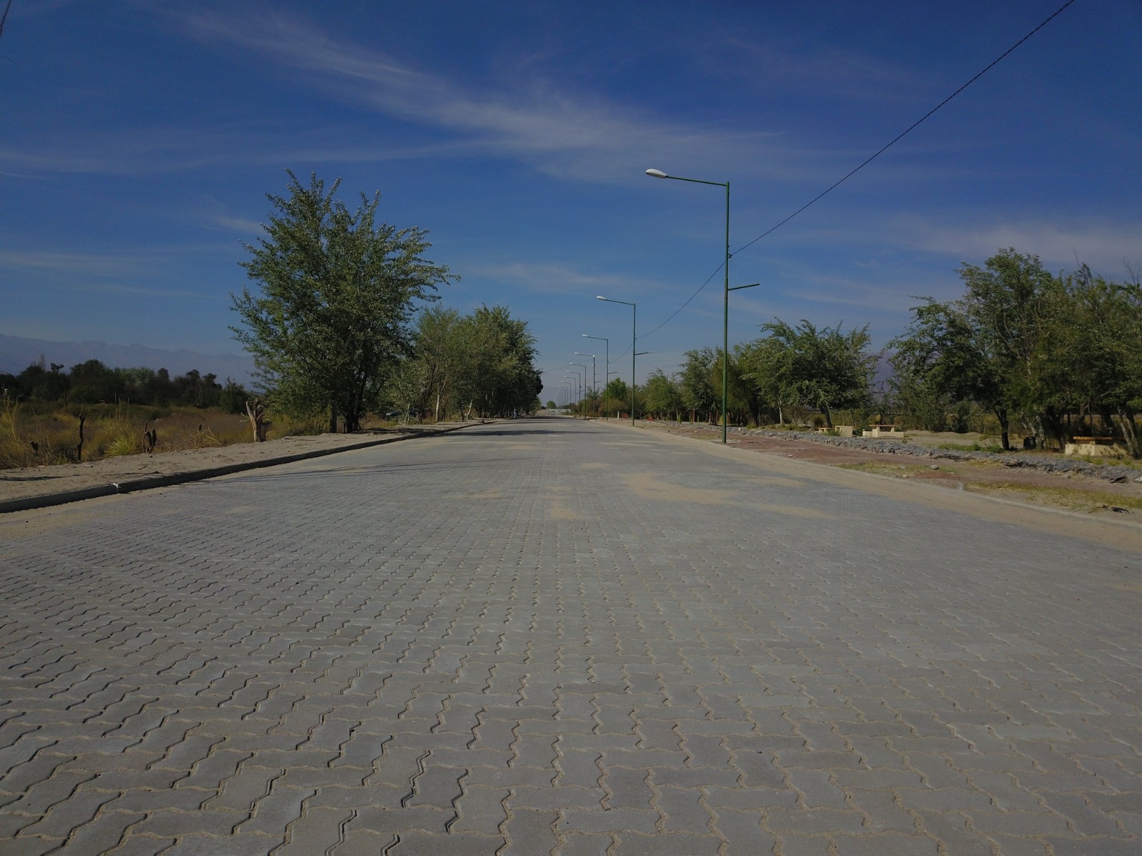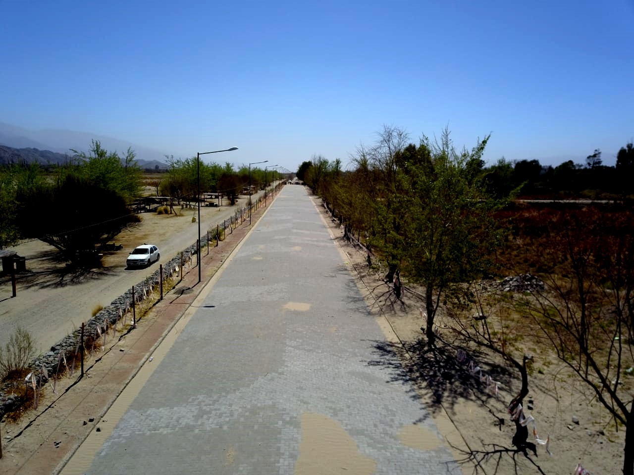 La obra culminada, en esta instancia, consiste en el adoquinado de más de 520 metros de dicha Av., desde el pasaje Sacramento hasta calle San Martín, rellenos, terraplén (vereda) y construcción de cordones cunetas del lado este de la avenida. Actualmente, continúan los trabajos, de la proyección realizada, que implican la entubación del zanjón colector para el desagüe, el acondicionamiento y mejoramiento del sector camping (asadores, quinchos, mesas, bancos, pista de salud, forestación) y la reconversión del alumbrado público con iluminación LED. El proyecto de reconversión, elaborado por el Tec. Elvio López, será realizado por la dirección de Alumbrado Público, a cargo del Tec. Hugo González, obra que incluye la extensión de 500 mts., donde se colocará en la parte alta de las columnas, luminarias LED de 140w sobre la calzada, mientras que en el sector bajo de las columnas se colocaran proyectores LED orientados hacia el sector camping. Esto implica una mayor eficiencia en la luminosidad del sector, ya que aumentará el flujo luminoso bajando considerablemente el consumo y mayor seguridad.