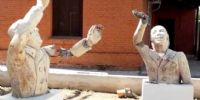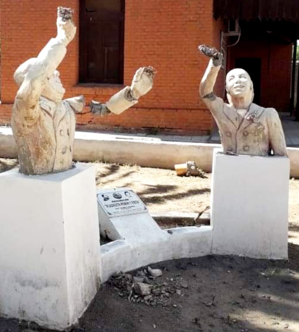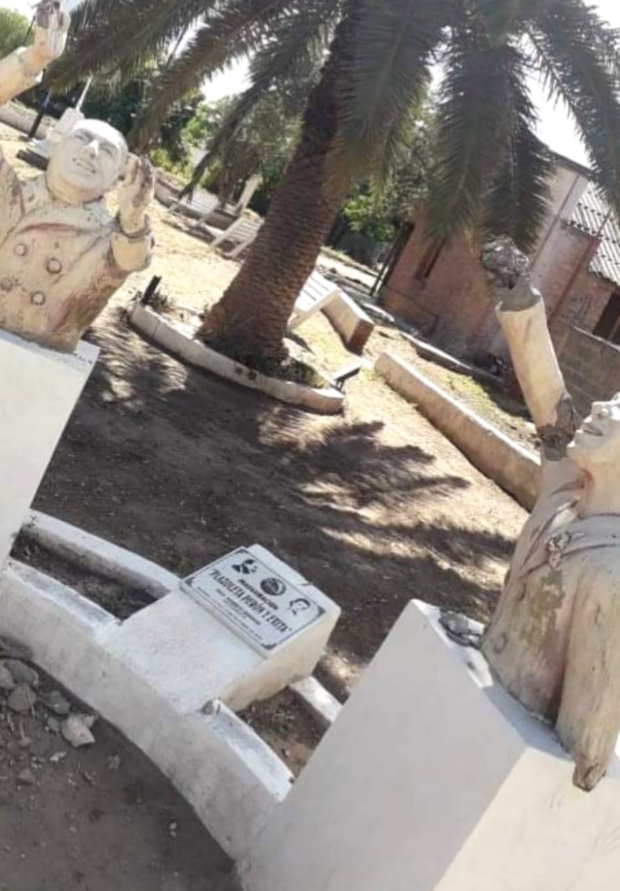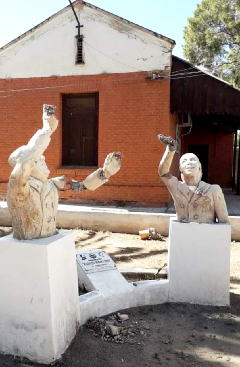 Se trata de los bustos que el municipio de Recreo colocó el año pasado en una plazoleta, en terrenos del Ferrocarril Belgrano Cargas.