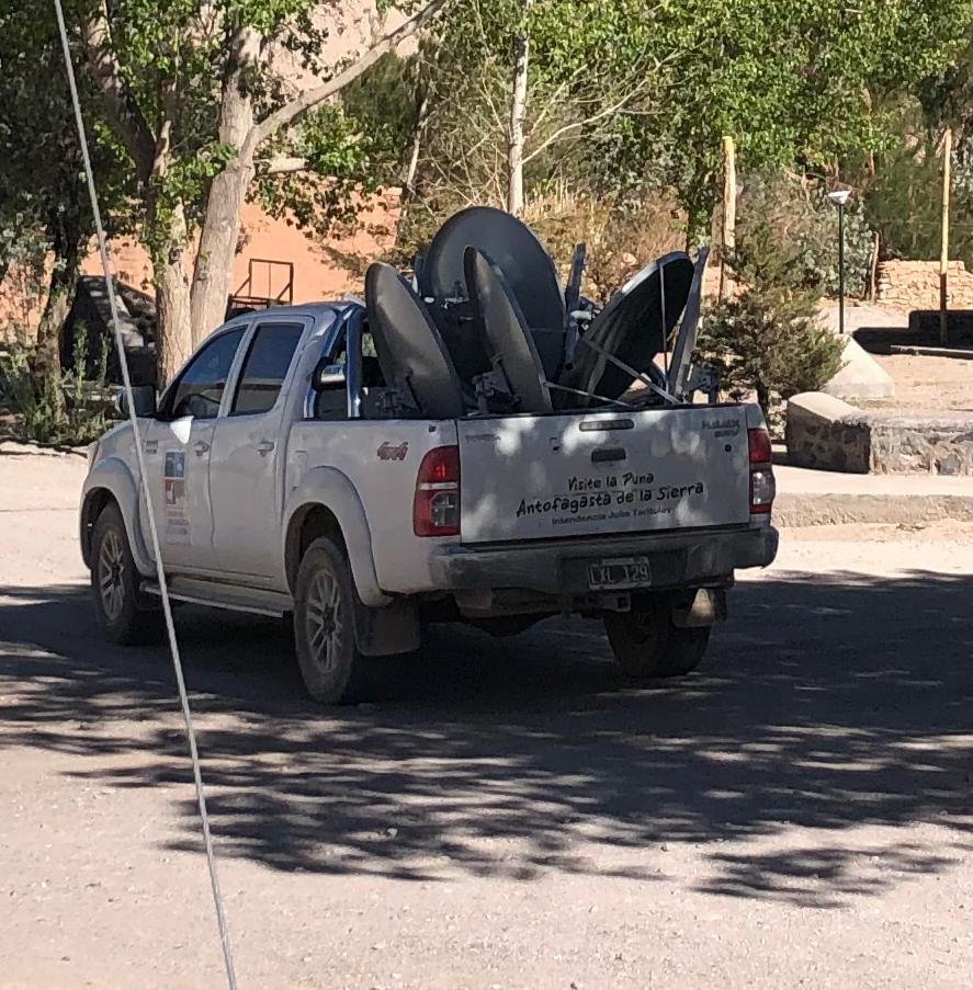 En las últimas horas, se conoció que el intendente de Antofagasta de la Sierra, Julio Taritolay (FCS-Cambiemos), en vehículos oficiales de la comuna entrega antenas de Arsat a los vecinos.