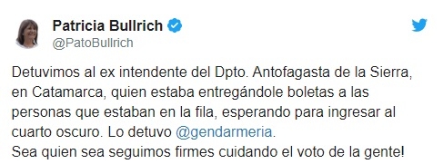 La funcionaria lo hizo a través de su cuenta de Twitter, en la que detalló que el ex jefe comunal se encontraba entregado boletas de voto a las personas que estaban haciendo la fila para sufragar.