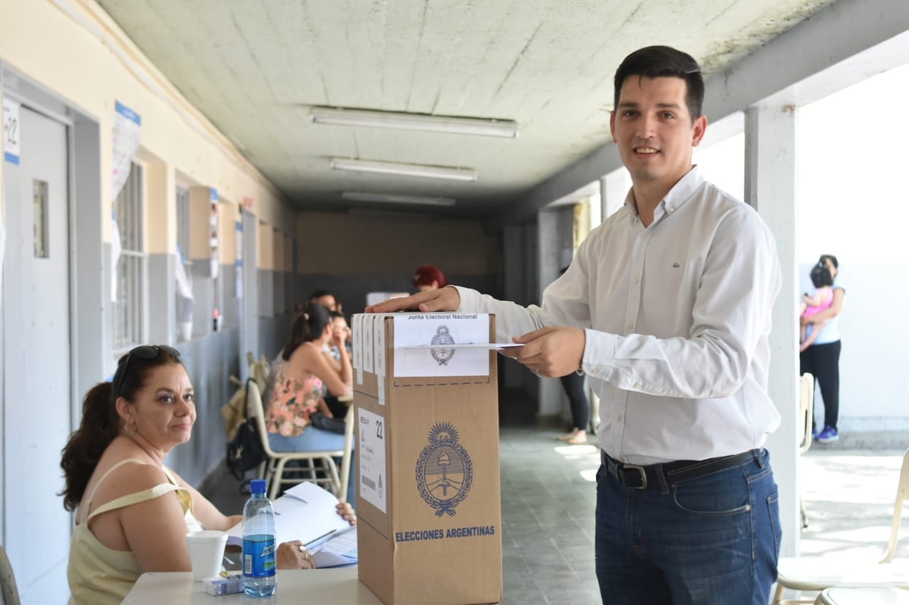 El candidato a Intendente por la Capital de Consenso Federal, Maximiliano Mascheroni, emitió su voto en la Escuela N°491 - "Naciones Unidas".