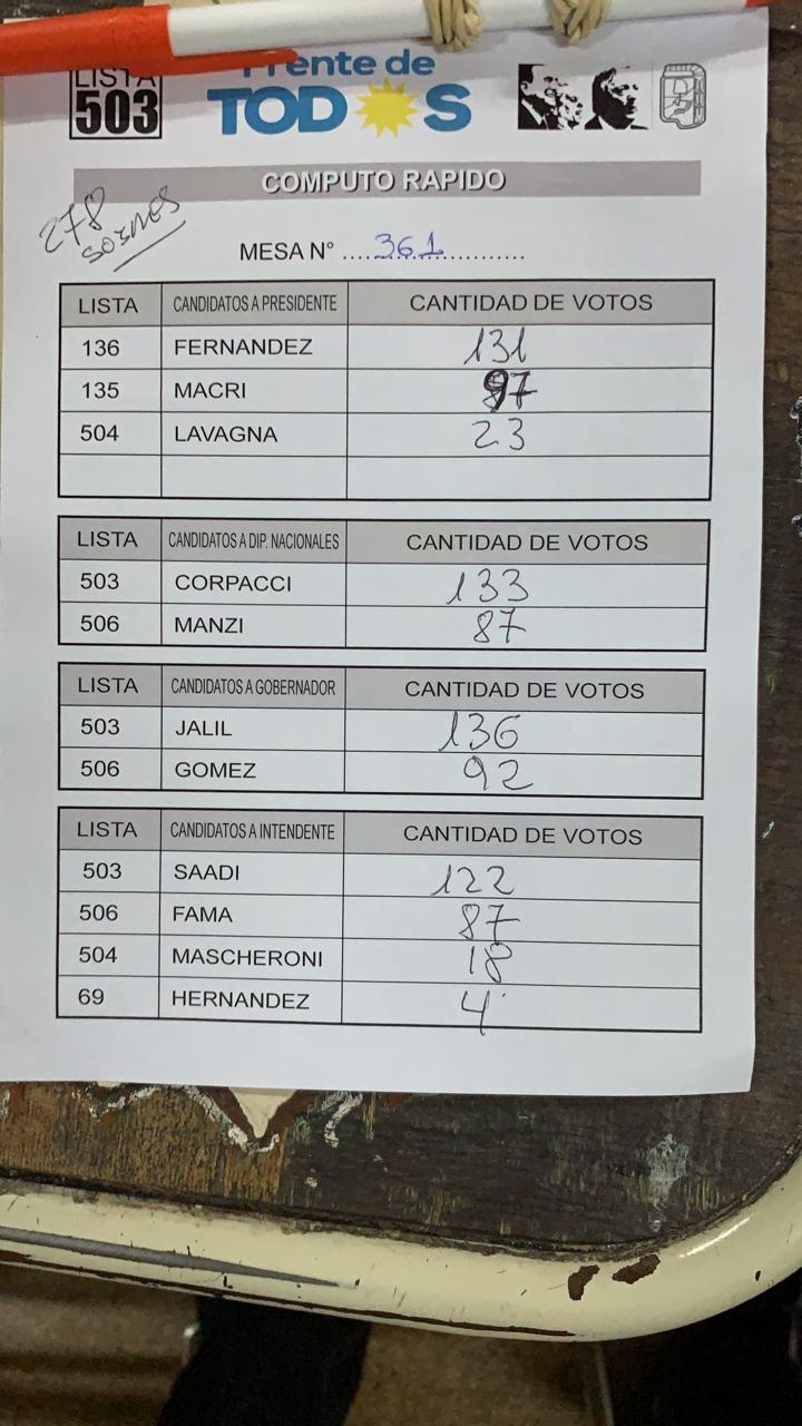 Circuito 3 mesa 93: Gobernador: Frente de Todos- 154 contra 54 de Juntos