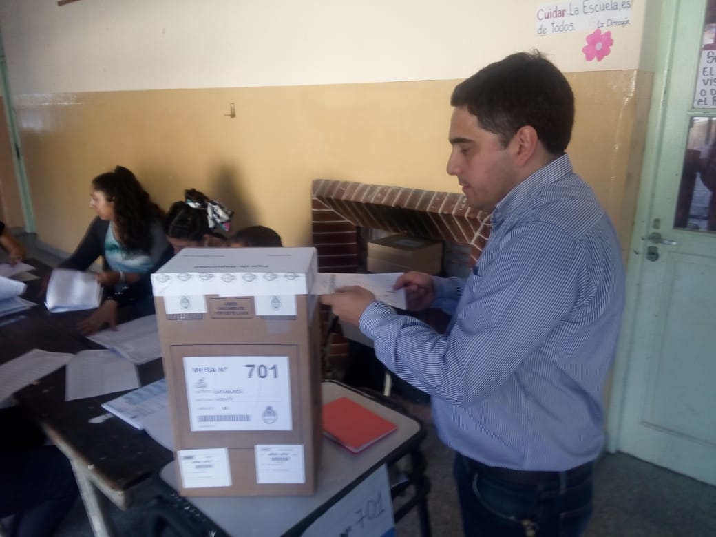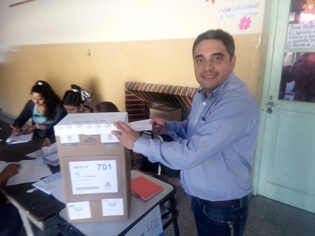 El actual intendente de El Rodeo y candidato a la reelección, emitió su voto a las 8.21 horas, en la mesa 701 de la Escuela de El Rodeo. Fue uno de los primeros postulantes que se acerca a las urnas.