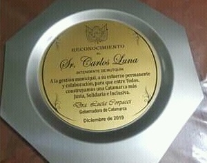 Luna le deseó éxitos a la mandataria en su nuevo desafío como diputada nacional. También el Intendente Luna recibió una plaqueta recordatoria de manos de la Gobernadora por su acompañamiento como Intendente de dicha localidad e Mutquin del departamento Pomán.