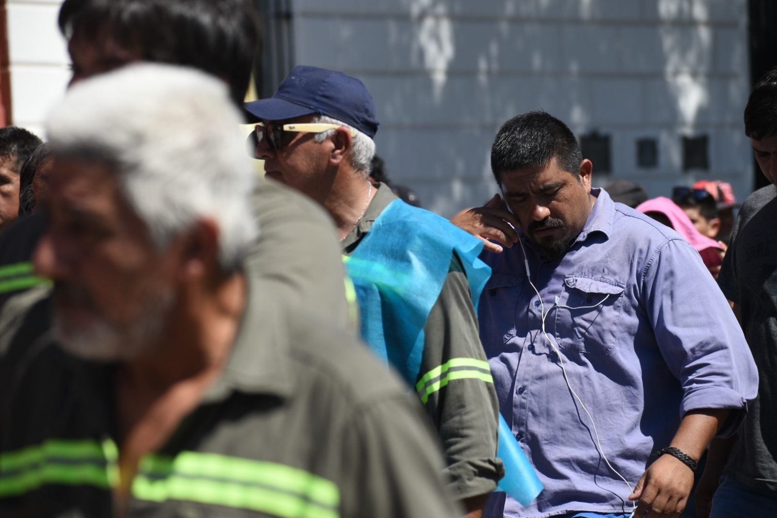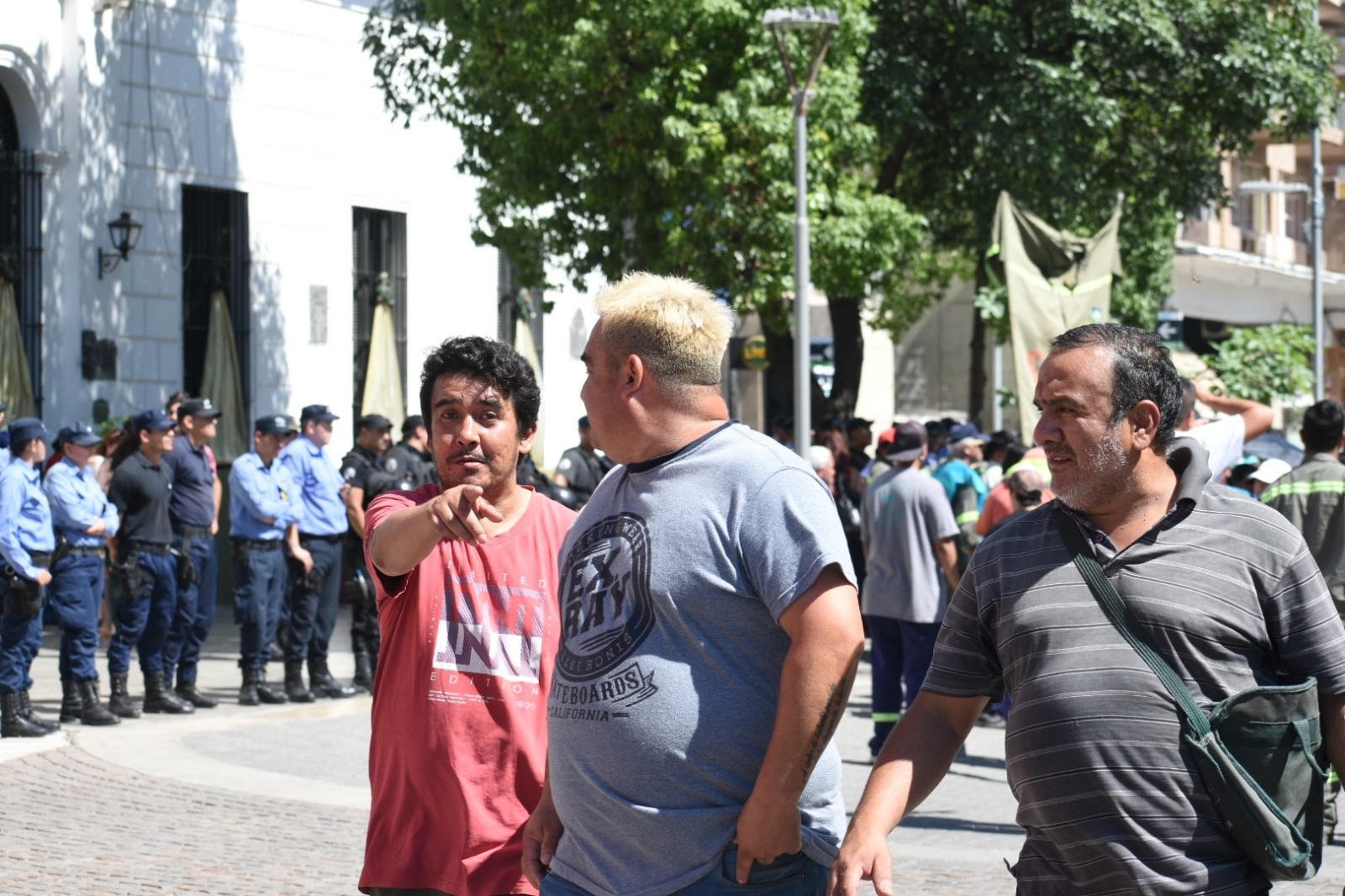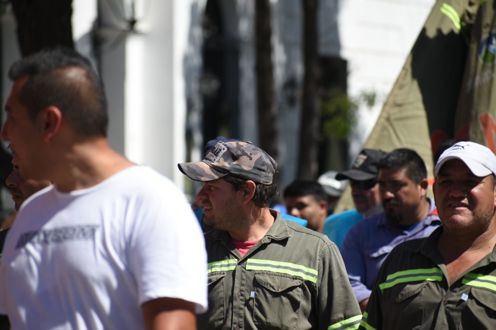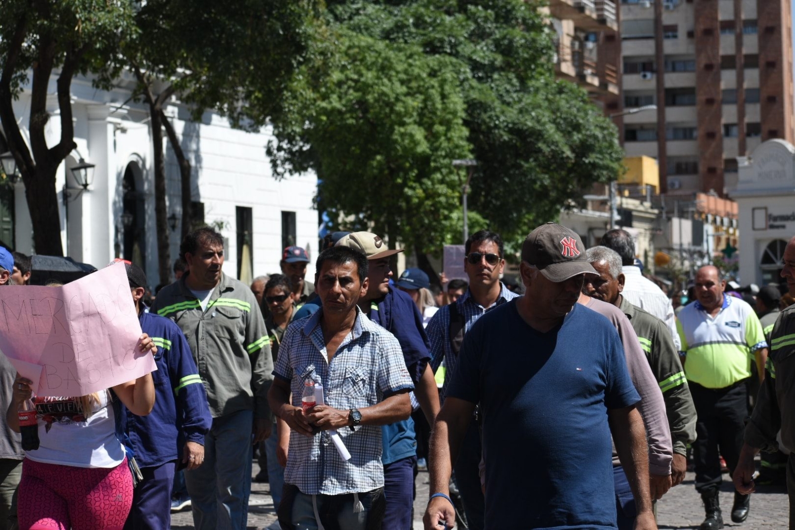En la mañana de este jueves, el SOEM, con Walter Arévalo a la cabeza, se manifestó contra el municipio capitalino que conduce Gustavo Saadi.