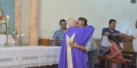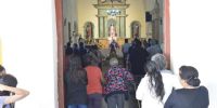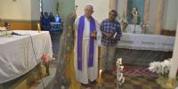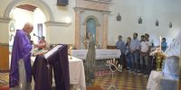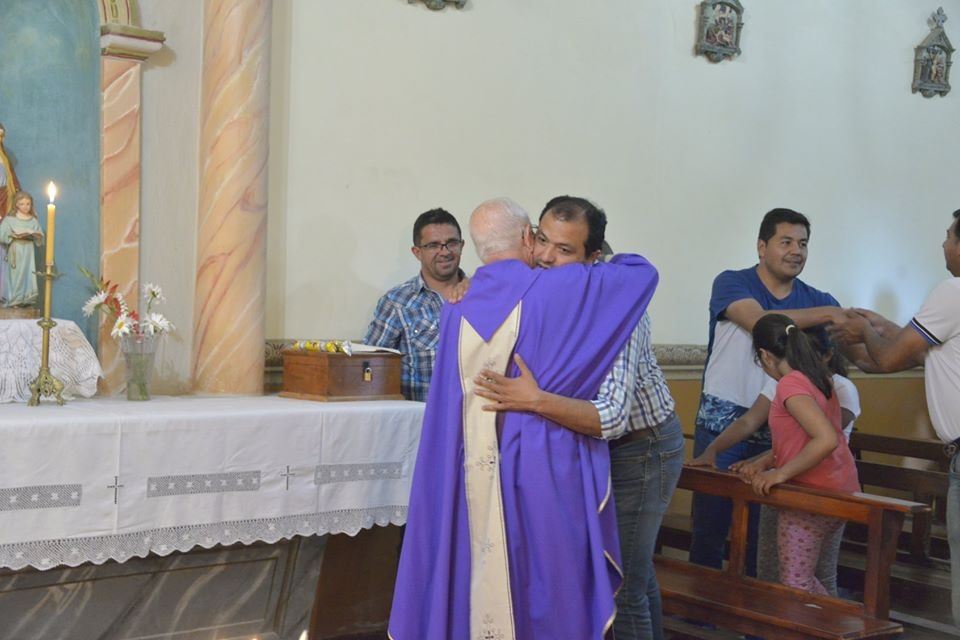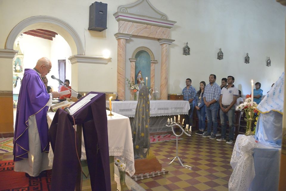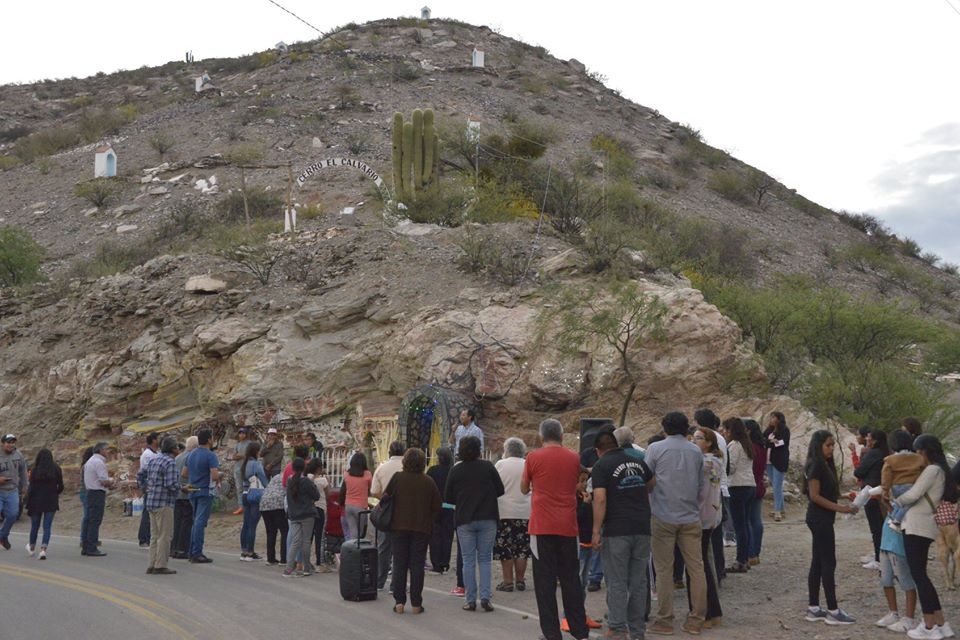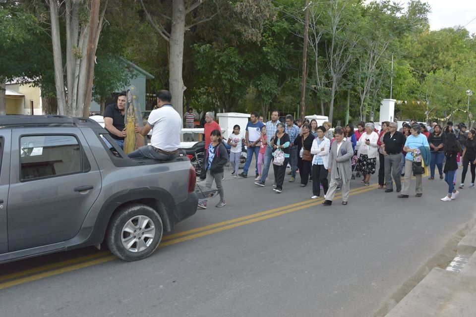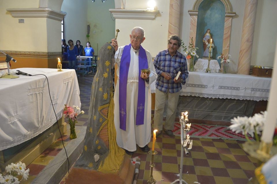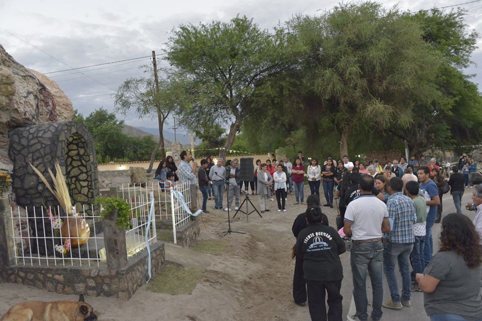 La celebración de la misa estuvo a cargo del padre Gerardo, en la Iglesia de Fuerte Quemado. Luego, en procesión se dirigieron hasta el pie del cerro El Calvario, para la inauguración de la gruta.
