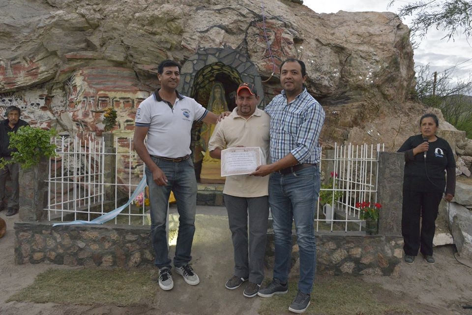 Asimismo, se destacó el trabajo del delegado comunal, Rolando Yapura, del coordinador de Comunas, Sergio Quevedo y del personal de la Comuna, quien trabajó de manera desinteresada. Por tal motivo, se le hizo entrega de reconocimientos. La gruta de la Virgen lleva una imagen realizada por el artista Daniel Aciar.