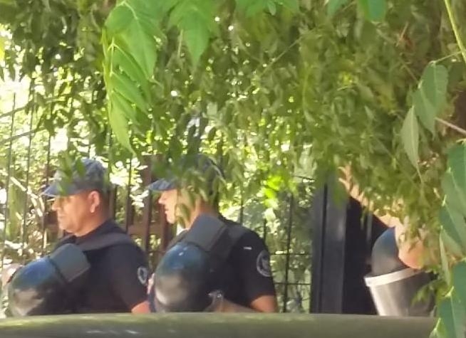 En el lugar, prendieron gomas en el portón trasero y hay una fuerte presencia policial. La protesta continúa en horas de la tarde, a la espera de una solución por parte del intendente saliente que está rodeado en su domicilio y no puede salir.
