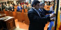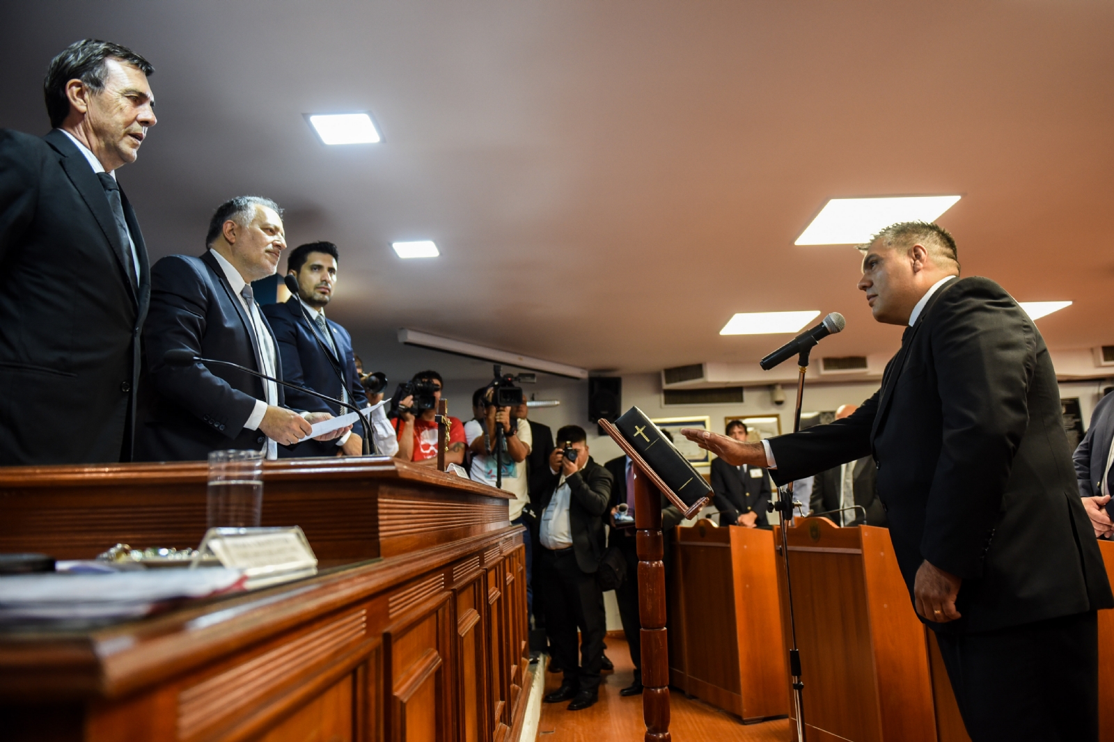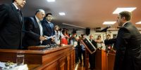 Posteriormente el nuevo Presidente Provisorio, senador Oscar Vera procedió a la toma de juramento a dichas autoridades.