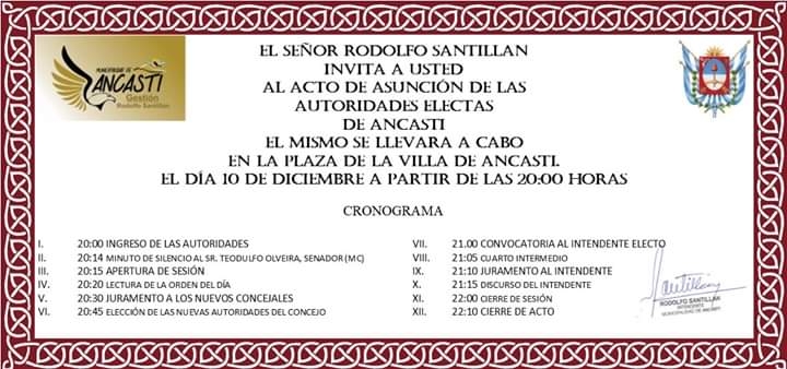 El Acto se realizará a partir de las 20 en la Plaza principal de la Villa de Ancasti.