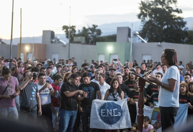 "A Valle Hermoso qué bueno que le pusieron ese nombre. Realmente está hermoso y está hermoso porque las casas están lindas, el alumbrado, los termotanques solares. Yo creo que este barrio va a ser muy hermoso porque ha sido construido codo a codo con ustedes, de cada uno de los ladrillos que se han puesto en sus casas... cosa que no es habitual. Y a veces uno piensa cuando le suceden cosas terribles como las que deben haber padecido ustedes esa noche cuando no pudieron entrar a su casa.