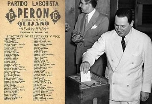“El domingo 24 de febrero de 1946, el Partido Laborista, luego convertido en Partido Justicialista, con la fórmula Perón-Quijano, tras una ardua y esforzada campaña “con tiza y con carbón”, enfrentó a la fórmula Tamborini- Mosca de la Unión Democrática, que estaba integrada por radicales, demócratas-progresistas, socialistas y comunistas, todos unidos en oposición a ese joven coronel que, desde la Secretaría de Trabajo y Previsión, se había preocupado por las necesidades de los trabajadores.