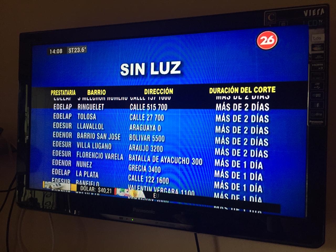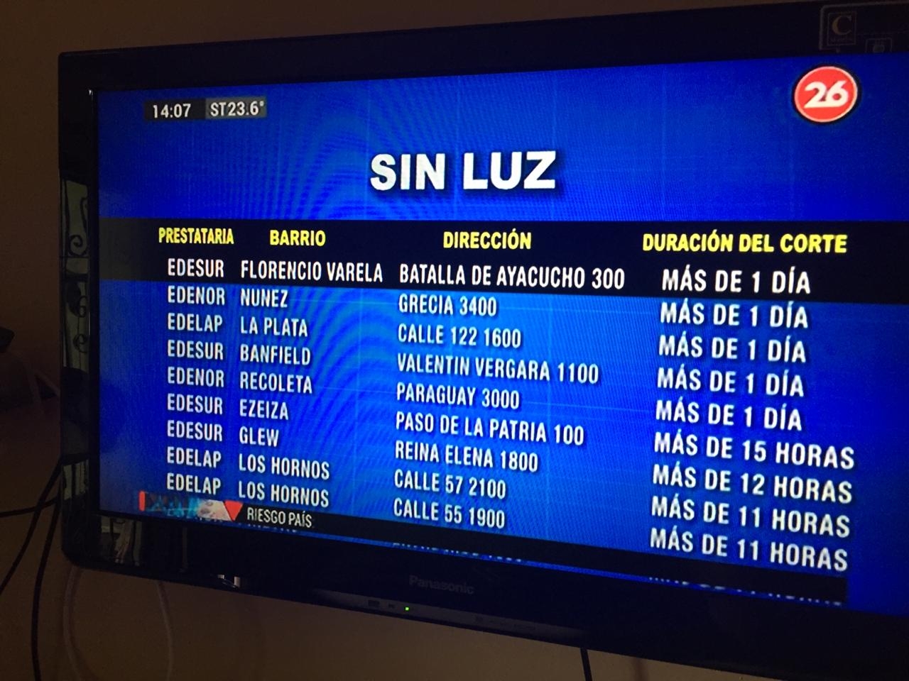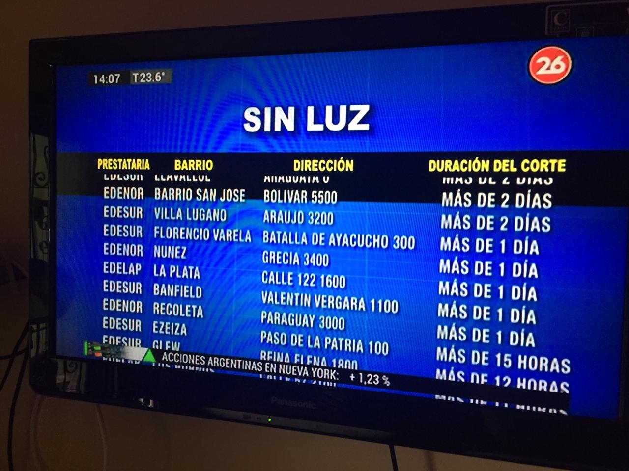 Se conoció un informe del ENRE Nacional que da cuenta de las horas y hasta días completos que pasaron sin luz cientos de miles de usuarios de la Ciudad Autónoma de Buenos Aires y de localidades completas de la Provincia de Buenos Aires.