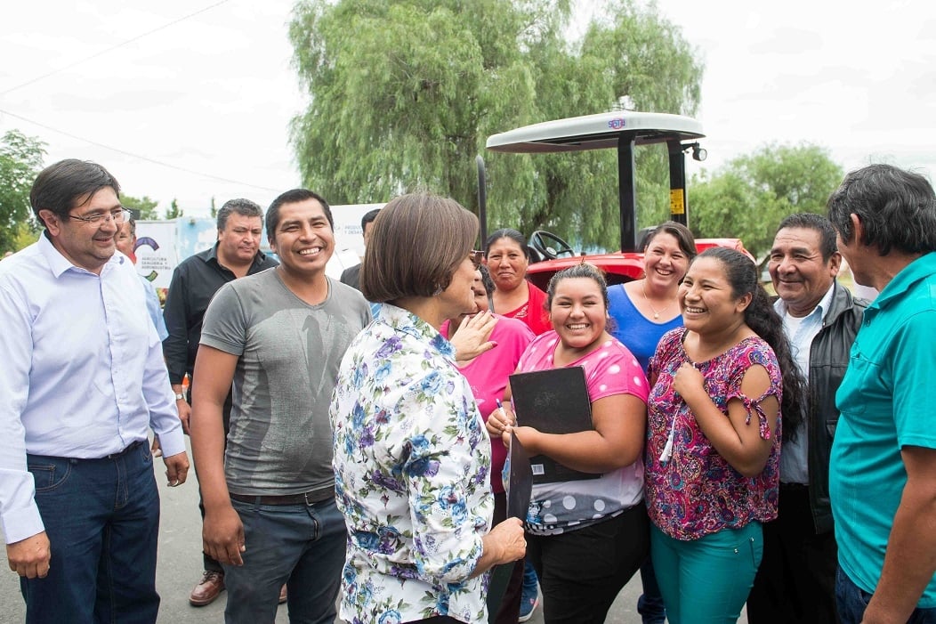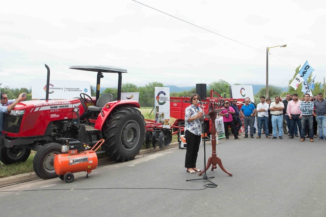 La gobernadora Lucía Corpacci visitó, esta mañana, la localidad de Colonia del Valle en el departamento Capayán para entregar maquinaria agrícola a los integrantes de la Asociación de Productores Catamarca, también otorgo créditos a productores y el Ministerio de Producción firmó un convenio con el Banco Credicop.