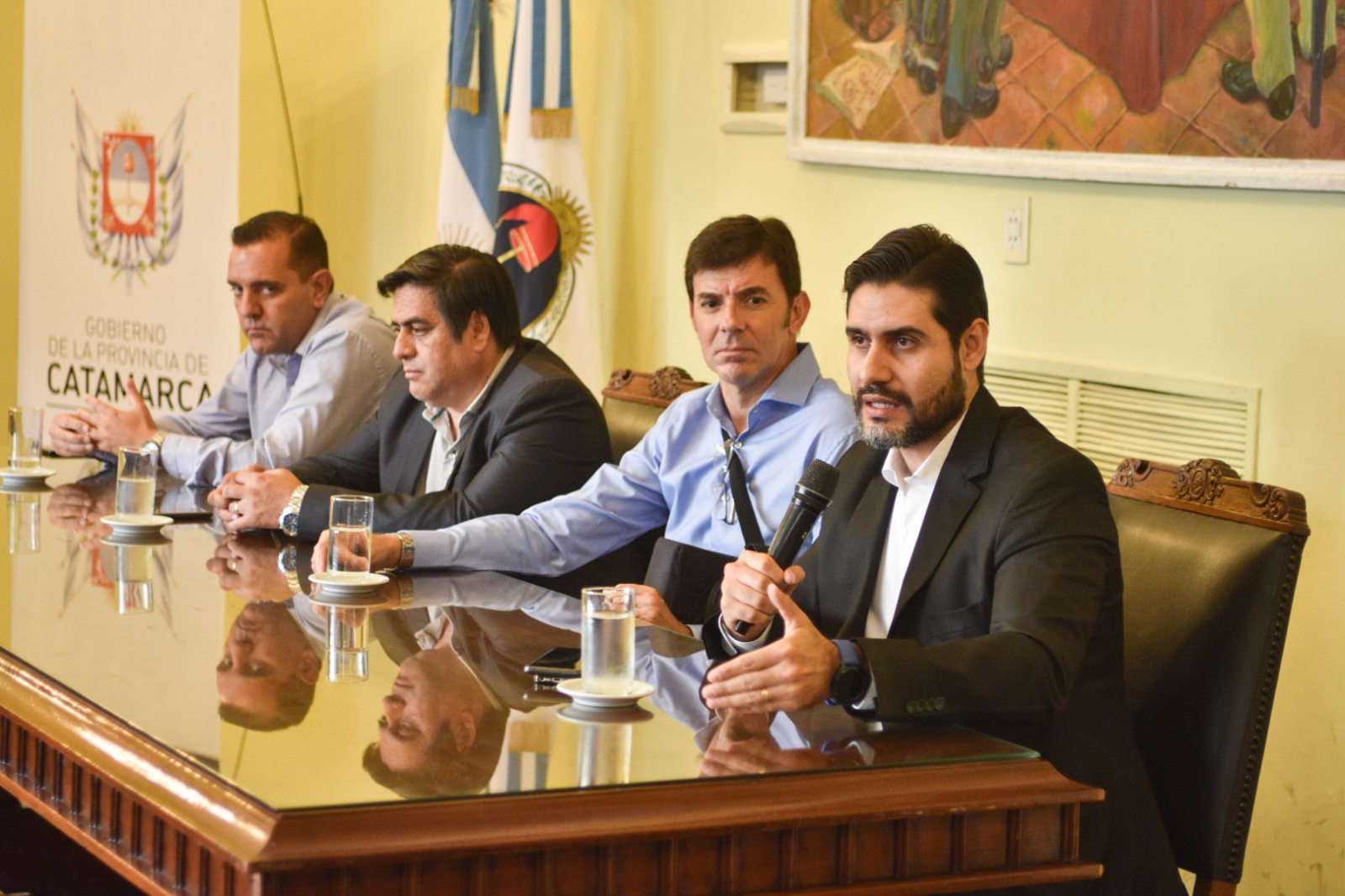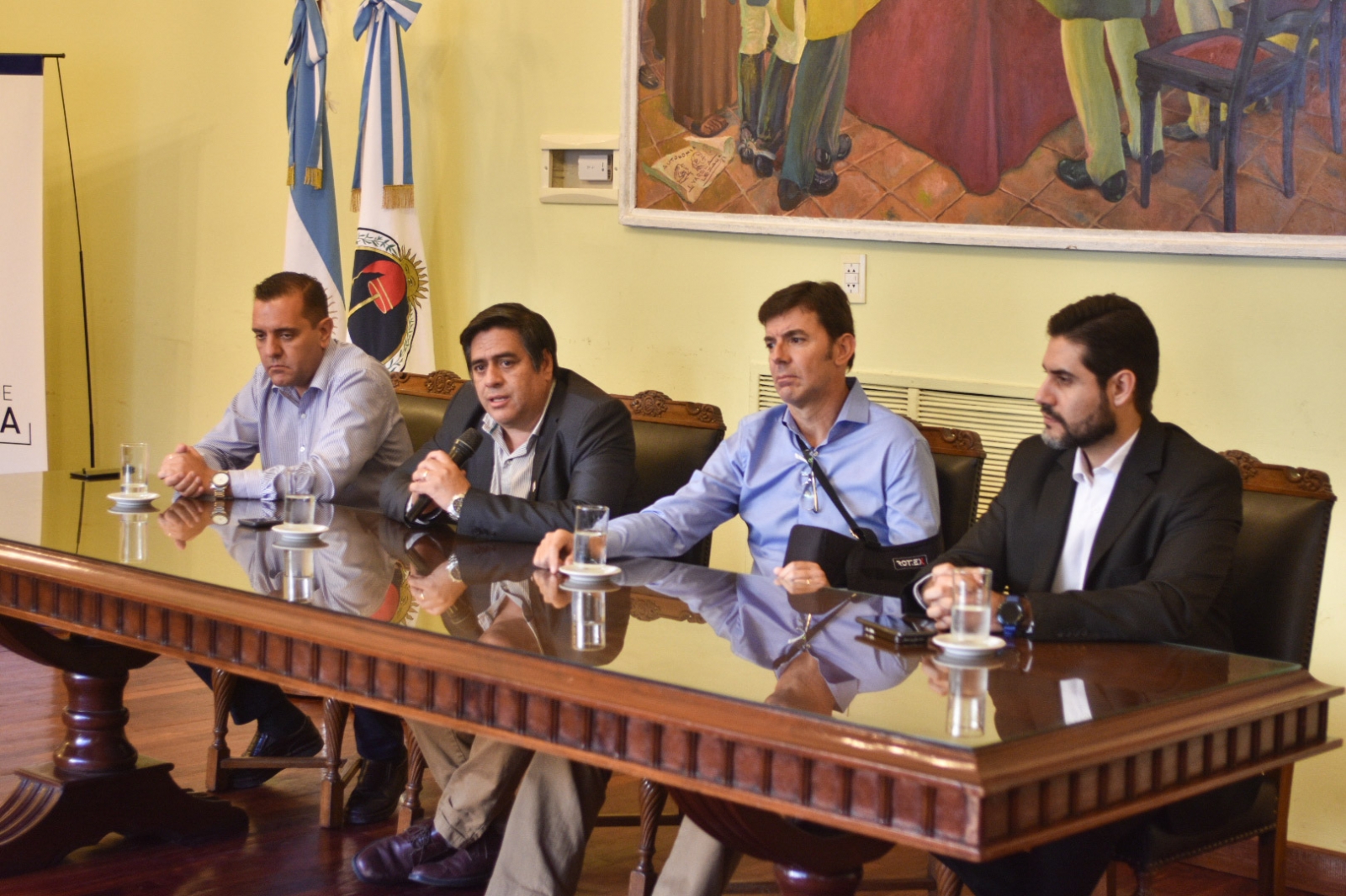 Los ministros Marcelo Rivera (Gobierno), Guillermo Dalla Lasta (Servicios Públicos) y Sebastián Veliz (Hacienda) junto al director de Transporte, Guillermo Matterson, destacaron el trabajo en conjunto.