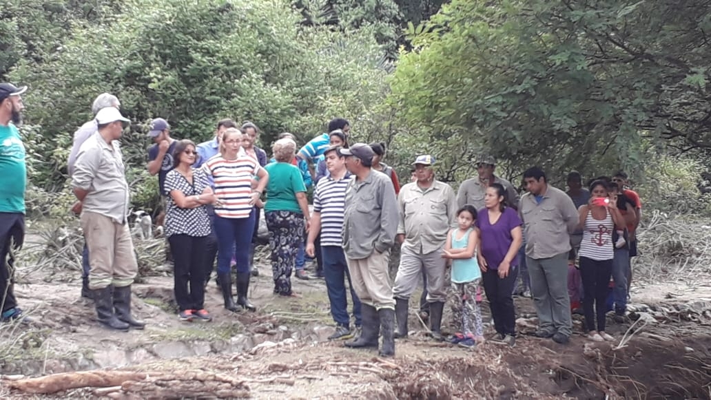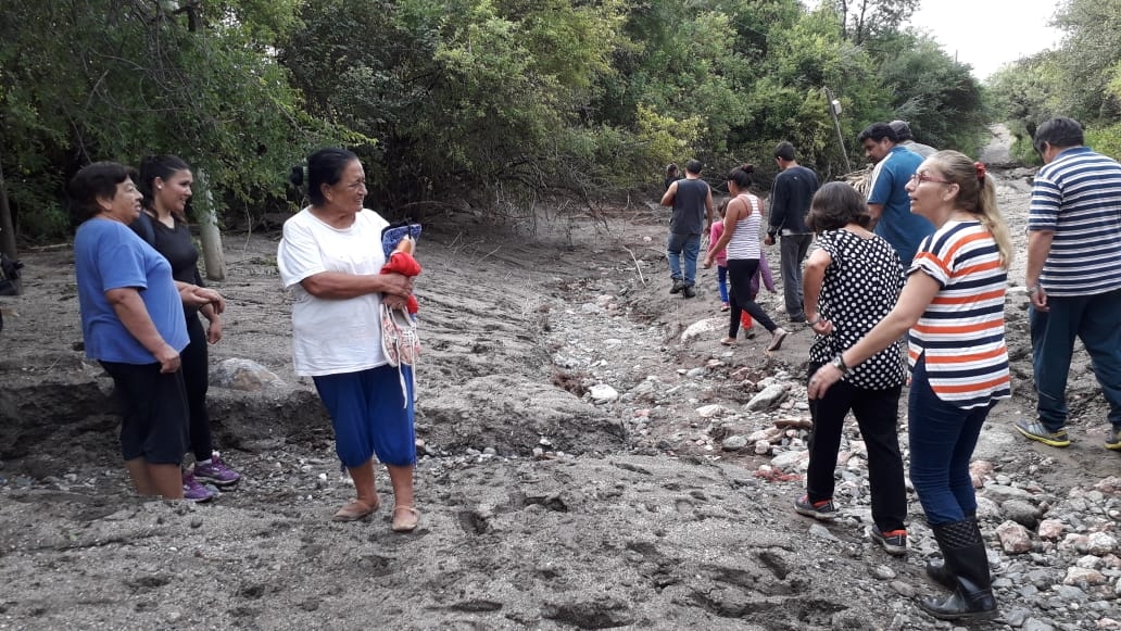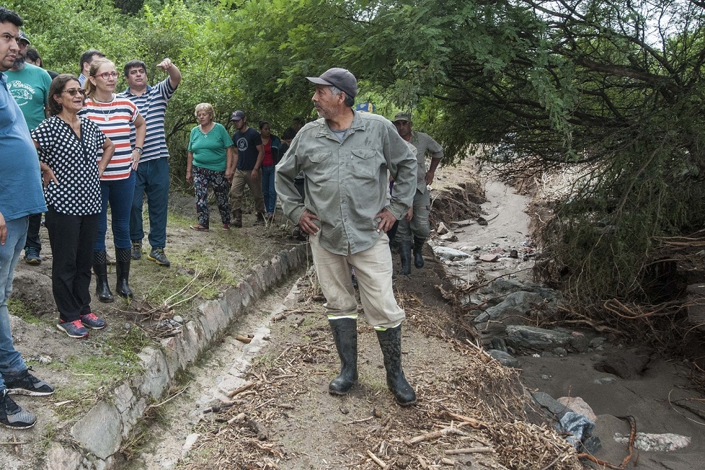 Lucía se reunió con los vecinos en la plaza y juntos caminaron durante 2 kilómetros para llegar hasta uno de los puntos más dañados por las crecidas y conocer la ubicación de tres familias que quedaron aisladas. También transmitieron que uno de los problemas más importantes es la falta de agua potable, por lo que la Jefa de Estado ya dio instrucciones al ministerio de Obras Públicas para que se realice una alternativa de provisión en la brevedad. Si bien ya se recuperó la energía eléctrica, todavía falta llegar a las casas más alejadas. Se observó el deterioro de los canales de riego y de las calles principales.
