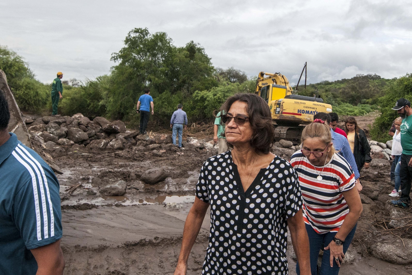 La mandataria arribó a Trampasacha alrededor de las 8:30 del domingo y cruzo al otro lado del río donde la esperaban los habitantes para que pueda realizar un relevamiento de los daños. Estuvo acompañada por el ministro de Desarrollo Social, Eduardo Menecier; de Gobierno, Marcelo Rivera; el Administrador del IPV, Dante López Rodríguez; el Director de Protocolo, Rodrigo Navarro y la Diputada Analía Brizuela. Juntos observaron las tareas de los empleados de Vialidad Provincial y el municipio que trabajarán durante la jornada para construir el paso que une Chumbicha-Trampasacha.
