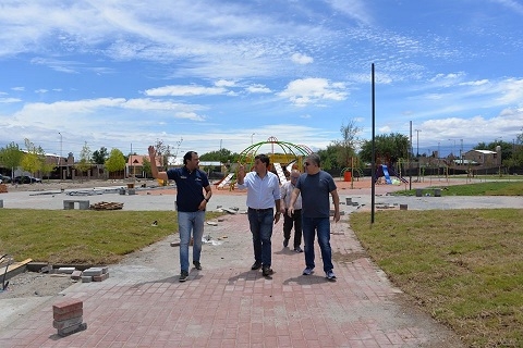 Se encuentra en ejecución bancos in situ; bancos con pérgolas, sector para artesanos, bebederos, pista de salud, colocación de piso de goma y sistema de bombeo de fuentes. Culminan los trabajos de escenario y gruta, pintura de juntas y demás detalles para su finalización.