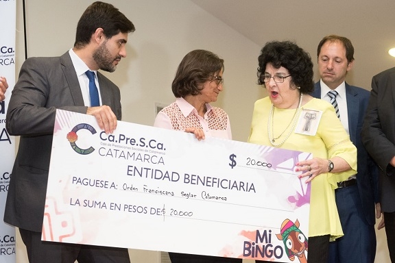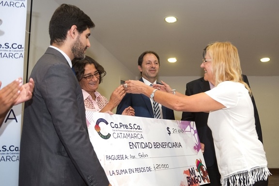 También estuvieron presentes el ministro de Hacienda, Sebastián Veliz, y el Gerente de Capresca, Néstor Tomassi. Cada institución fue la encargada de vender los cartones del exitoso bingo realizado en diciembre del año pasado, y un porcentaje de las ganancias que obtuvo Capresca fue repartido entre las 40 instituciones.