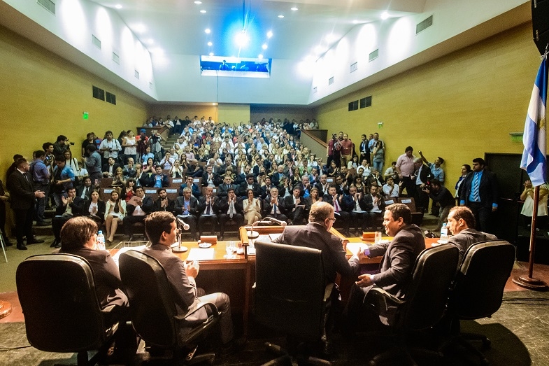 La apertura de sesiones contó con la presencia de la gobernadora Lucía Corpacci, quien llegó acompañada por ministros de su gabinete al Complejo Cultural Urbano Girardi.