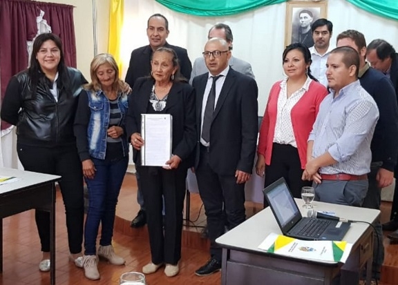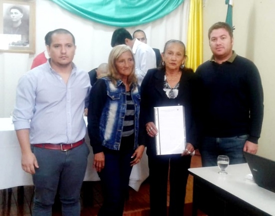El momento más emotivo se vivió cuando dos hermanas directas de Romero, acompañadas por integrantes de la JP Recreo que estaban presentes en la sesión recibieron de mano del Presidente del Concejo Alberto Oyola y demás Concejales, la Copia de dicha Ordenanza.