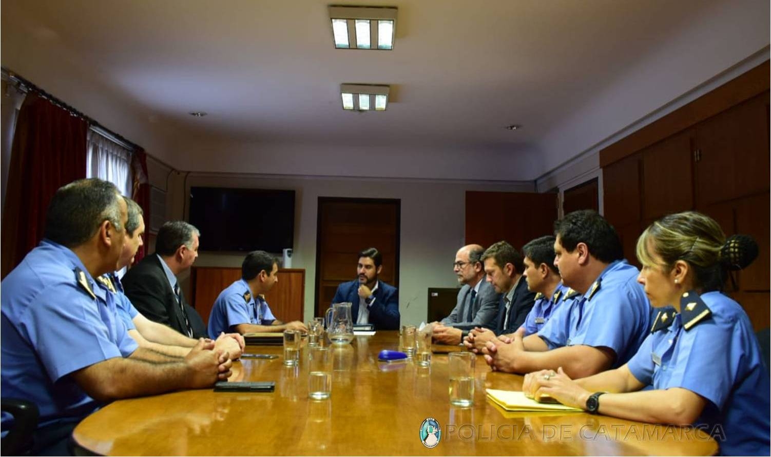 El ministro de Hacienda, Sebastián Veliz, suscribió el acta acuerdo con el jefe de Policía, Crio. Gral. Lic. Orlando Antonio Quevedo, quien participó de la reunión acompañado por el secretario de Seguridad Democrática, Marcos Denett, el subjefe de Policía, Crio. Gral. Carlos Alfredo Kunz, miembros de la Plana Mayor Policial y asesores de la institución.