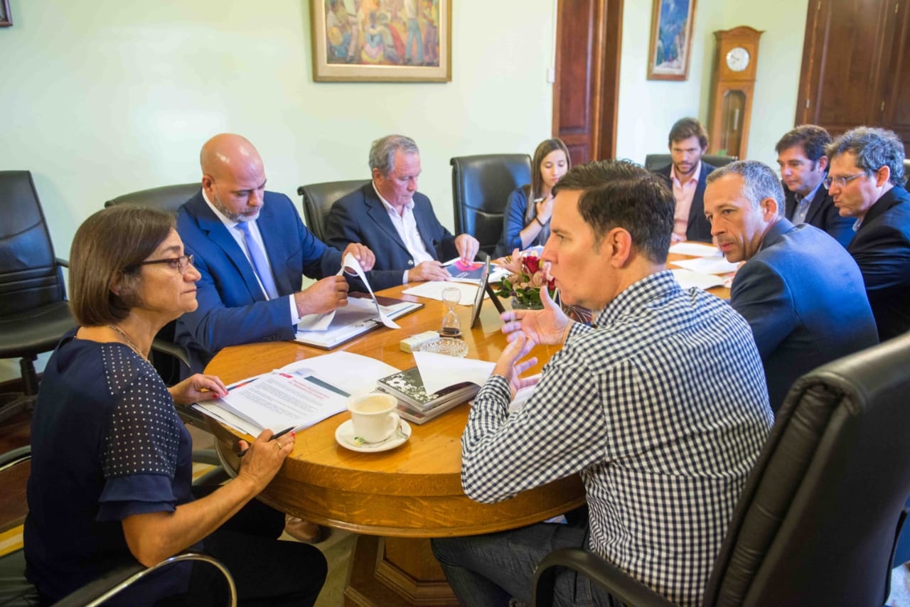 Acompañaron el encuentro, el secretario de Minería Rodolfo Micone, la subsecretaria de Minería, Inés Ulla y el ministro de Obras Públicas, Rubén Dusso.
